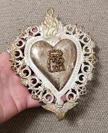 Grande e antico Cuore Sacro ex Voto Grazia Ricevuta, pezzo ricercato da collezione.