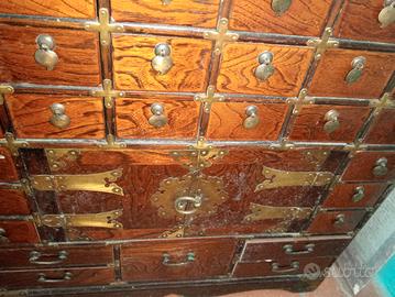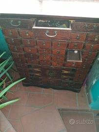 vendo antico mobile da farmacia cinese grande, con 36 cassetti piccoli, 7 cassetti medi, un cassetto grande e due ante. in perfette condizioni. spedizione a carico dell' acquirente.
