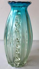 Grande vaso in cristallo Muranese con decorativo Bulicante che consiste in delle piccole bolle d’aria che vengono immerse nel vetro e poi è arricchito da applicazioni laterali ad andamento ondulato che in gergo veneziano sono chiamate “morisse”. Il vaso è stato realizzato nelle officine Muranesi di Barovier & Toso negli anni '30 circa. Si presenta in ottimo stato senza crepe ne rotture ne scheggiature. Dimensioni: Altezza cm. 43,00 diametro bocca cm. 14,00 e diametro basamento 12,00 / 13,00. Occasionissima.