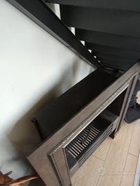 "Riproduzione in acciaio inossidabile georgiano, cornice per camino lucidata con griglia incorporata. Circa 1980
