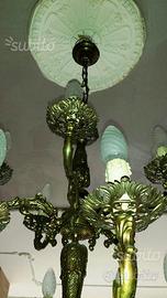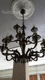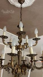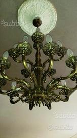 Lampadario a raggiera in ottone, anni 60 per salone, sala da pranzo o soggiorno. Antico pezzo di prestigio. 14 punti luce Diametro cm 70, altezza regolabile da 50 a 100 cm