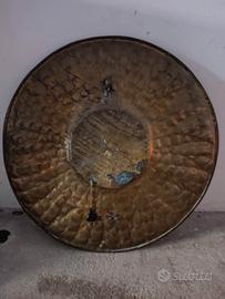 Per cambio erredamento, vendo particolare antico lampadario sfacettato in ottone diametro 80 cm. con all'interno foglia in rame da 45x40 cm. con dietro la presa per un lampadina con attacco standard 220 v. Molto bello e particolare l'effetto atmosfera che di crea con la sua accensione. Astenersi perditempo, grazie.