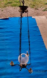 vendo bellissimo lampadario vintage primi 900 in bronzo e ampolla paralume in cristallo misure del lampadario L cm 38 H Cm 35 catena sospensoria regolabile circa 1 MT in ottimo stato di conservazione