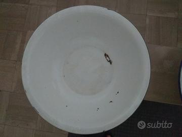 Coppia di antichi lavamani in ferro battuto con piatti in ceramica in ottimo stato.