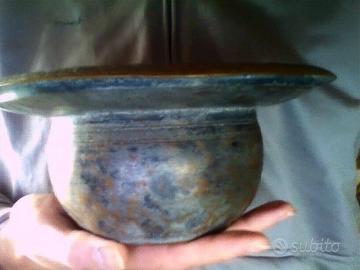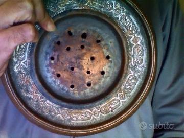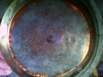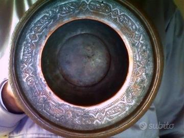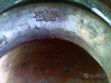 Antico lavamani Persiano di epoca Safavide , in rame stagnato, inciso sul bordo superiore (foto 2) e superiore ( foto 6) Il punzone sul fondo ne testimonia l'antichità . Acquisito in Iran negli anni '50.