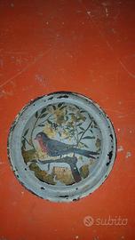 Nei tondi erano inseriti due cerchi dipinti a mano raffiguranti un uccellino e una farfalla perchè il letto era di una signorinella. Li ho facilmente staccati perchè erano stati dipinti da uno di famiglia, ma ho visto che il giallo del letto sui tondi perde qualche pezzettino e allora rinuncio a tenermeli.