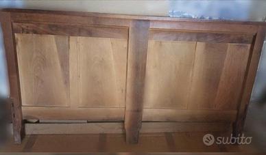 struttura robusta con pannellature riquadrate, dal disegno ricorda la divisione centrale, sia nella testiera che nella pediera, che potrebbe indicare un letto matrimoniale "a barriere", comune in ambienti contadini dove si dormiva separati ma vicini.