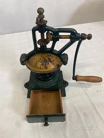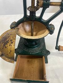 Macinacaffè da banco, anni primi 900, numerato 1. ( I collezionisti sanno cosa significa anche il valore della numerazione) In ottime condizioni, (senza punti ruggine ecc.. tranne che superficiali nella parte apribile che posso ripristinare io, vedi foto) in ghisa e legno dal peso di 5 kg. Solo per intenditori