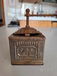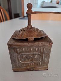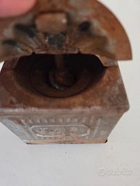 Antico Macinino Caffè F B Tre Spade In Buone Condizioni. dimensioni cubo di base 8x8x8 cm altezza totale 14cm