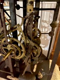 Vendo affascinante meccanismo antico da orologio da torre, risalente alla fine dell’Ottocento o inizio Novecento. Realizzato in ferro e ottone, con complesso sistema di ingranaggi, alberi e ruote dentate. Dotato di due campane in metallo, con martelletti per la suoneria oraria.