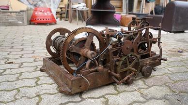 Importante meccanismo originale di orologio da torre, realizzato in ghisa e ferro.