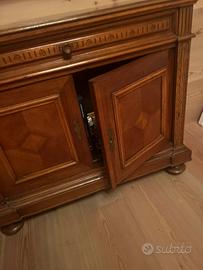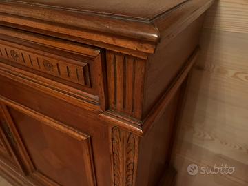 Fine ottocento/primi novecento, bel mobile in legno finemente lavorato; in ottime condizioni, dotato di un cassetto e due antine con ripiani interni e divisorio. Misura cm 35 di profondità, 92 di larghezza e cm 78 di altezza.