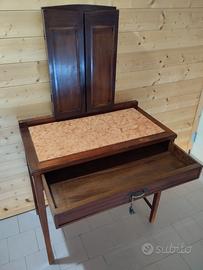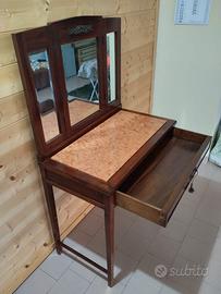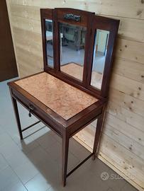 Toilette da trucco con ripiano in marmo "Rosso Verona"; primi '900, con cassetto e trittico di specchi richiudibili. Il mobile si presenta in ottime condizioni. Dimensioni: L88xP49xH150 (cm).