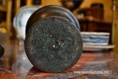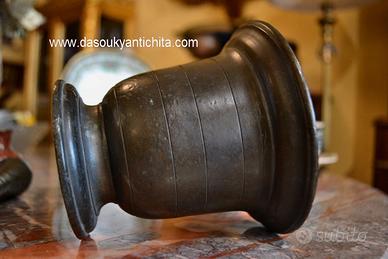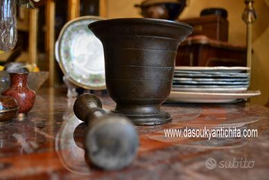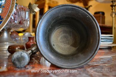 Antico mortaio con pestello da farmacia / speziale del 900 in bronzo fuso a cera persa.