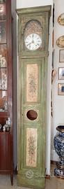 Orologio a Pendolo a colonna di origine francese risalente inizio 1800 in legno con dipinti floreali di campagna provenzale.