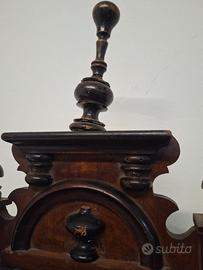 Cassa: Elegante cassa in legno massello con ricche lavorazioni tornite, colonne e frontone.