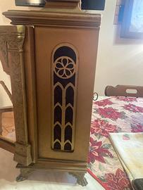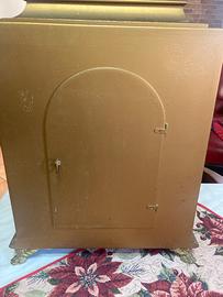 Splendido e Antico Orologio da tavolo,Forma camino,in stile impero Scocca in legno verniciata ,arricchito con bronzetti,meccanica con chiave di carica manuale,8giorni ,Walt ,suoneria Westminster .anni 70 Parigina old.