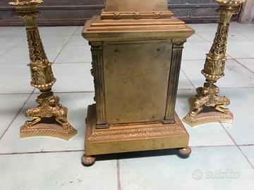Salve, vendo antico e funzionante orologio a corda manuale, suona le ore, corredato da due candelabri con rifiniture a rilievo, quadrante in ceramica bianca, misure: candelabri 0,53; orologio 0,58; lo vendo per mancanza di spazio, ritiro in zona, no sognatori o perdi tempo!