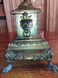 Bellissimo trittico composto da orologio e da 2 candelieri dorati vendo causa eredità. L' orologio è funzionante.