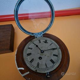 l orologio è un “ship’s clock” meccanico (probabile 8‑day), con quadrante a numeri romani e foro di carica singolo, destinato all’uso su barche o in ambienti nautici, databile indicativamente a metà Novecento.