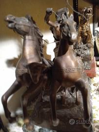 Antica biga orologio in bronzo Misure 62x47x26 Orologio d’epoca antico ceduto come non fuzionante