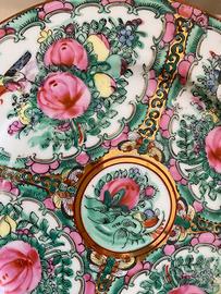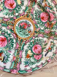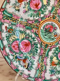 Antico piatto cinese “Rose Canton” in porcellana dipinta a mano – marcato