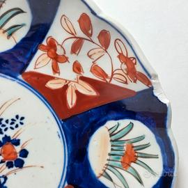 Antico piatto in porcellana giapponese stile Imari risalente al periodo Meiji (fine XIX secolo). Decorato a mano con i classici colori blu cobalto e rosso ferro. Motivo centrale a cesto di fiori e bordo lobato. Decorato anche nel retro Il piatto presenta due sbeccature sui bordi. Diametro 21.5 cm antico antiquariato ancien antique ancient antiguo antigüedades antiquities patina patine patination pátina arte art fine art belle arti beaux arts schöne künste bellas artes artigianato old master old world charm charme antico ancien charme alter charme encanto antiguo marmo marble bronzo pietra argento epoca vintage vintage style stile vintage style vintage vintage stil estilo vintage collezionismo collectibles objets de collection sammlerstücke coleccionismo arredo interni interior design decorazione interni décoration intérieure innenausstattung decoración interior arredamento stile esposizione oggetti antichi arte antica oggetti d’epoca antique objects historical art 400 500 600 700 800 900 XVII XVI XV XVIII XIX XX