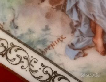 cedo meraviglioso piatto vassoio prestigiosa porcellana Royal Vienna von timbro Reale, epoca secondo 1800 finemente dipinto a mano firmato rifinito in oro 24kt. misura 26 centimetri di diametro. da museo