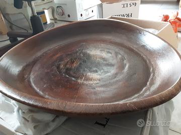 ANTICO PIATTO VASSOIO PER PORTATA IN LEGNO OVALIZZATO DIAMETRO 39-37,5 ALTEZZA 5,5-4 SPEDIZIONE A CARICO DEL DESTINATARIO