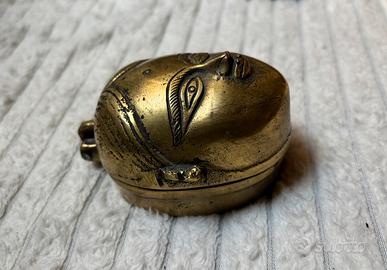 *Antico porta-lime indiano in ottone, a forma di volto umano, usato come parte del rituale tradizionale del paan.