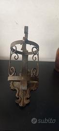 Antico portabottiglie in ferro battuto. La bottiglia marrone è vuota.Vintage COME DA FOTO