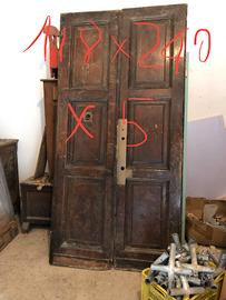 Portone a due ante in noce massello spesso 5 cm della fine dell'800. Da restaurare Altezza 240 e larghezza complessiva 118