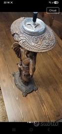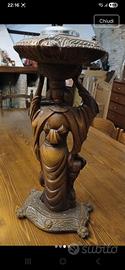 Antico posacenere da terra, spesso identificato come un pezzo italiano Mid-Century Modern (MCM). Raffigura una figura femminile in stile orientale, comunemente descritta come una Geisha. Ecco i dettagli principali dell'oggetto: Funzione: È un posacenere a colonna o da terra. Il bacile superiore è progettato per contenere il posacenere vero e proprioin metallo con un tappo in bachelite. Alcuni esemplari simili vengono utilizzati anche come fioriere o porta-vasi decorativi. Materiale: Sebbene abbia l'aspetto del legno intagliato o del bronzo, queste statue sono tipicamente realizzate in resina pesante. Origine: Molti esemplari riportano la dicitura "Modello Depositato" e sono di manifattura italiana degli anni '50 o '60. Dimensioni: Solitamente hanno un'altezza che varia tra i 45 e i 65 cm.