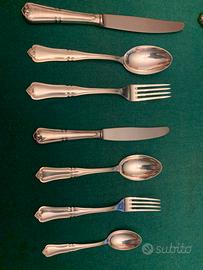 Servizio antico e prestigioso di posate da 6 in argento 800/1000 - anni 50 - manifattura stile inglese, punzonato su ciascun elemento col marchio 800 degli argentieri fratelli Broggi, Milano , conosciuti in tutto il mondo dal 1818