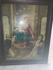 Antico quadro Madonna di Pompei Maria Santissima del Rosario in quadricromia con antica cornice in legno Misure 85x67 Conservato in ottime condizioni.