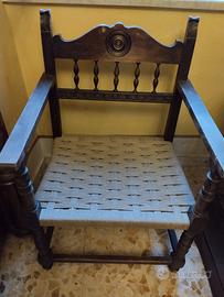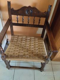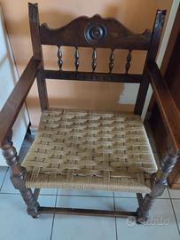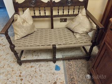 Antiquariato - Antico salottino in Stile Rinascimentale - in legno e midollino - Misure Divanetto biposto: L 114 cm, P 54 cm, H 87.5 cm, seduta H 40 cm. - Poltrone stile trono: L 57.5 cm, P 55 cm, H 87 cm, seduta H 40 cm. - ottimo stato – pari al nuovo - epoca inizi '900 - euro 300,00
