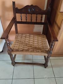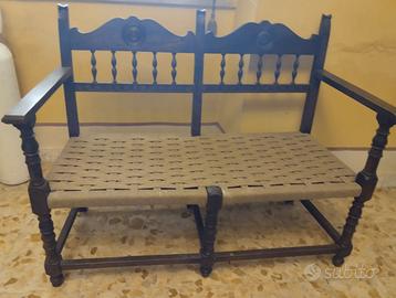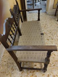 Antiquariato - Antico salottino in Stile Rinascimentale - in legno e midollino - Misure Divanetto biposto: L 114 cm, P 54 cm, H 87.5 cm, seduta H 40 cm. - Poltrone stile trono: L 57.5 cm, P 55 cm, H 87 cm, seduta H 40 cm. - ottimo stato – pari al nuovo - epoca inizi '900 - euro 250,00