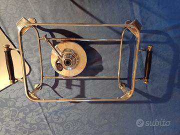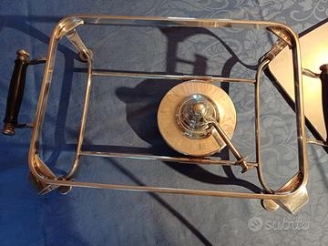 Antico scaldavivande ad alcol, da tavola, con piastra scorrevole, placcato argento