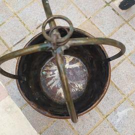 Vecchi ricordi di un tempo passato,il famoso scaldino per le mani,si metteva il carbone si accendeva e poi per farlo ardere si ruotava prendendolo dall'anello posto nella sommità',tutto in rame.epoca anni 30 -40 .