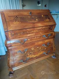 Scrittoio fine '800, ribaltina con cassettini e tiretti di sostegno, 3 cassettoni.