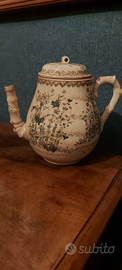 Antico servizio da the' giapponese in porcellana decorata, composto da quattro tazze, una teiera ed una lattiera. Il beccuccio della teiera è stato incollato alla base, ma la frattura è quasi invisibile.