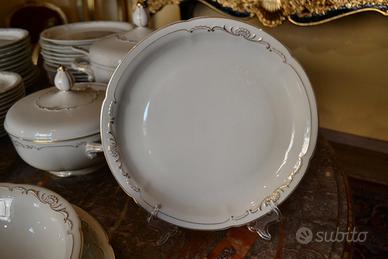Elegante servizio di piatti in porcellana avorio con rilievi in oro degli anni 40/50 realizzato dalla prestigiosa Konigl pr.Tettau 1794 famosa manifattura tedesca