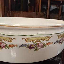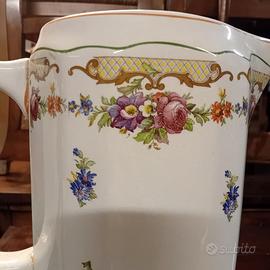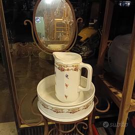 Raffinato set da bagno d epoca in ceramica marchiato Richard. Pezzo di storia della manifattura italiana perfetto per arredare con stile vintage e romantico. Caratterizzato da un raffinato decoro floreale policromo,arricchito da motivi a ghirlanda e sottili profili dorati. Ottime condizioni. Ritiro ad Este. Per ulteriori informazioni a disposizione.