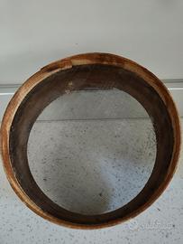 Antico setaccio artigianale in legno e rete in metallo per farina diametro 22,5 cm. altezza 8 cm. Anni '40, solo per esposizione Condizioni come da foto
