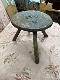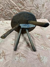 ANTICO SGABELLO DA MUNGITURA , ORIGINALE DEI PRIMI ANNI DEL 1900 , PARTICOLARE DI FORMA ROTONDA E CON 4 PIEDI , IN LEGNO MASSELLO DI ROVERE , PRESENTA LA PATINA ORIGINALE DELL’EPOCA , OTTIMO COMPLEMENTO DI ARREDO ADATTO A QUALSIASI AMBIENTE , LE DIMENSIONI SONO : DIAMETRO 30 CM