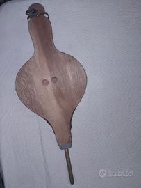 La base dell'oggetto è in legno massello, ed il soffietto è realizzato in pelle di animale ben conservata nonostante l'età.