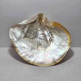 Antico svuotatasche stile Napoleone III in madreperla naturale Pinctada Maxima e bronzo dorato, XIX secolo. Dimensioni 23 x 20 x 7,5 cm circa, lo svuotatasche è la conchiglia madreperlacea stessa la quale è montata su una base in bronzo dorato a volute con decorazioni di racemi che avvolge la parte posteriore della conchiglia e termina nel fronte. Ottime condizioni, patina naturale. Piccolo forellino al centro della conchiglia e piccola scheggiatura sul bordo. antiquariato scultura statua busto bronzo marmo ceramica dipinto quadro pittura arte antica olio su tela telaio cornice dorata legno intagliato mobili antichi armadio specchiera originale raro collezione restaurato autentico decorazione d'epoca antiquités première sculpture statue buste marbre céramique tableau peinture huile sur toile cadre doré bois sculpté meubles anciens armoire miroir rare collection restauré authentique décoration d’époque Antiquitäten altes e Skulptur Büste Marmor Keramik Gemälde Kunstwerk alte Kunst Öl auf Leinwand antiker Rahmen vergoldet Holz geschnitzt antike Möbel Schrank Spiegel selten Sammlung restauriert authentisch Dekoration aus der Zeit antigüedades escultura estatua bronce mármol cerámica cuadro pintura óleo sobre lienzo marco dorado madera tallada muebles antiguos armario espejo colección restaurado auténtico decoración de época antiques bust bronze marble ceramic painting artwork old oil on canvas frame gilded carved wood antique furniture wardrobe mirror restored authentic period decoration silver plata argento vetro vaso glass vase vitrio 400 500 600 700 800 900 liberty déco barocco neoclassico rinascimento gotico classico impero legno madera wood Luigi XVII XVI XV XVIII XIX XX