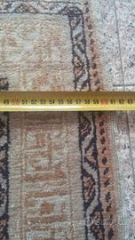 Il tappeto è in lana e seta e misura cm 99 x 61, con lati non regolari, come da foto.