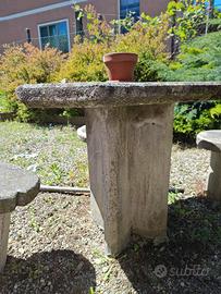Antico tavolino con sgabelli cemento/pietra da giardino