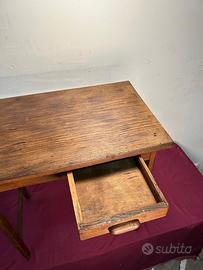 Antico Tavolino epoca ‘900 Scrittoio In Legno Di Abete Con Cassetto e scorrevole.